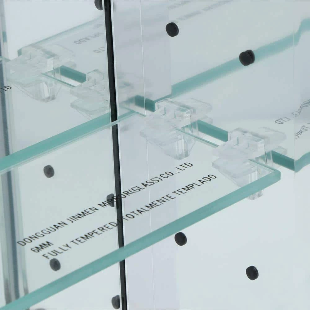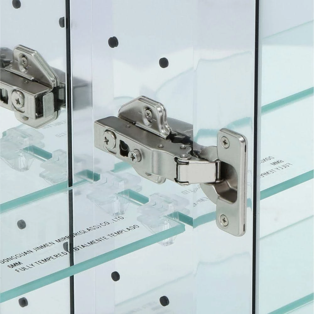 A staple in any master bath or powder room, this 24 in. W x 30 in. H Frameless Bathroom Medicine Cabinet has a beveled mirror door for multi-faceted styling. Interior adjustable glass shelves hold all your toiletries and bath items, placing them within easy reach. A rust-free aluminum construction with mirror back offers durability and ensures years of use.