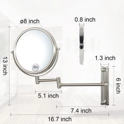 EAKYHOM 8 in. W x 8 in. H Small Round Magnifying Wall Mount Bathroom Makeup Mirror in Nickel