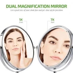 OVENTE Small Antique Bronze Lighted Mirror (13.2 in. H x 4.7 in. W), 1x, 7x Magnification