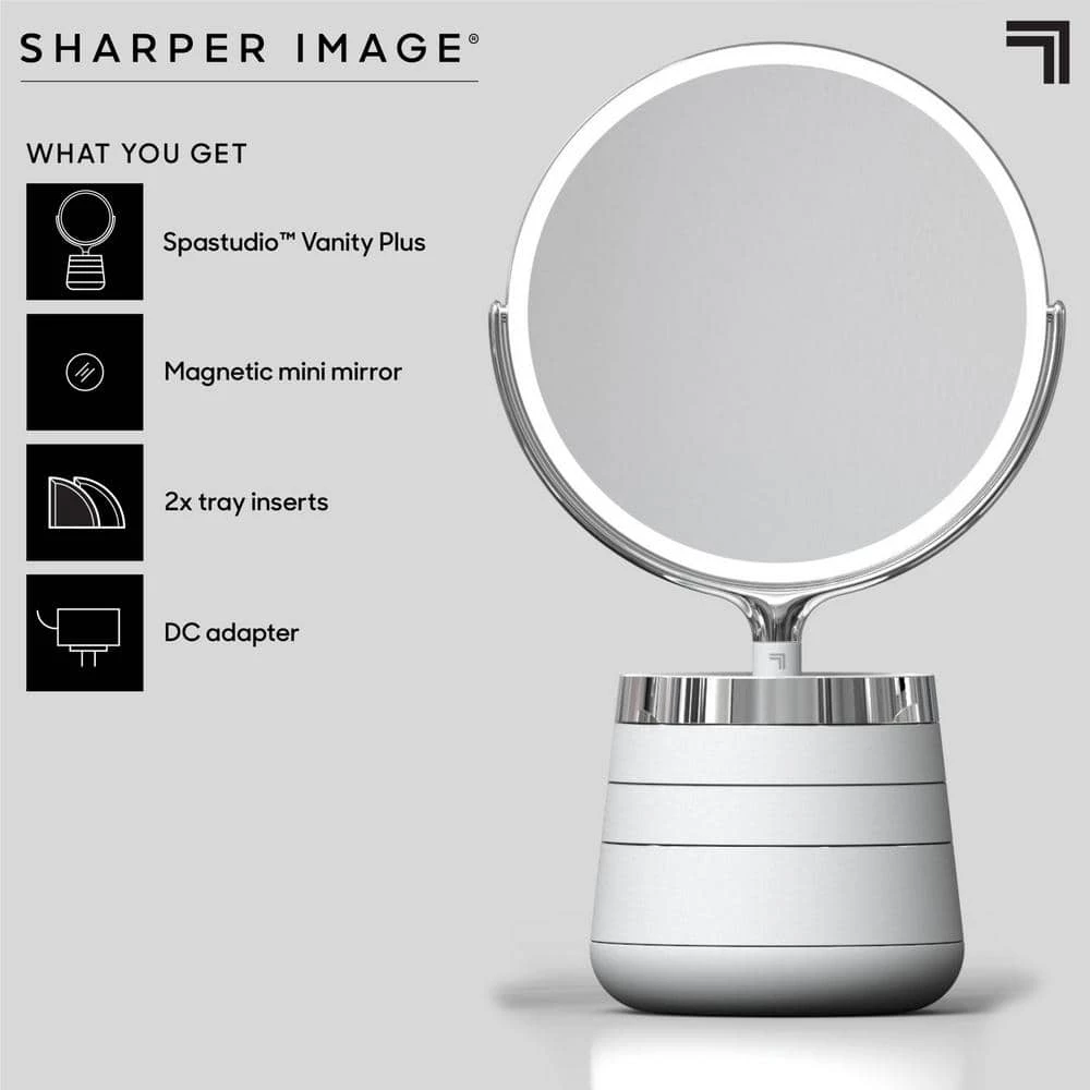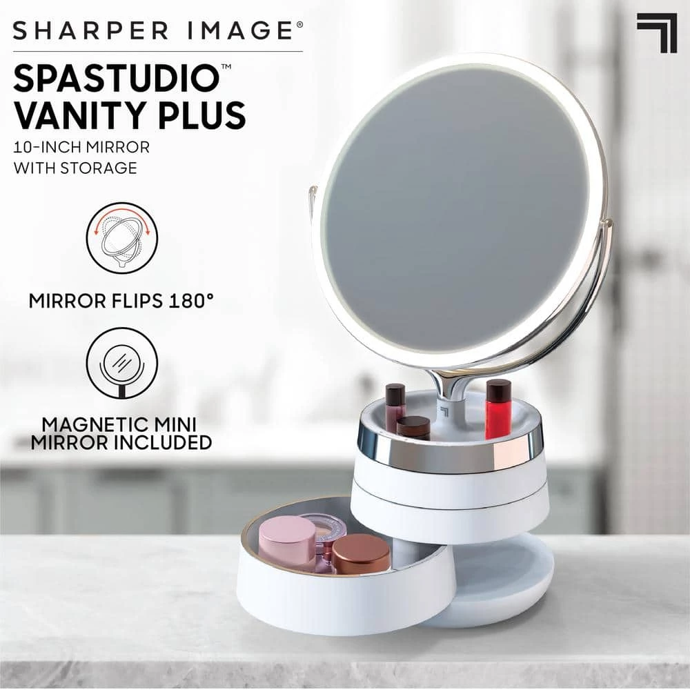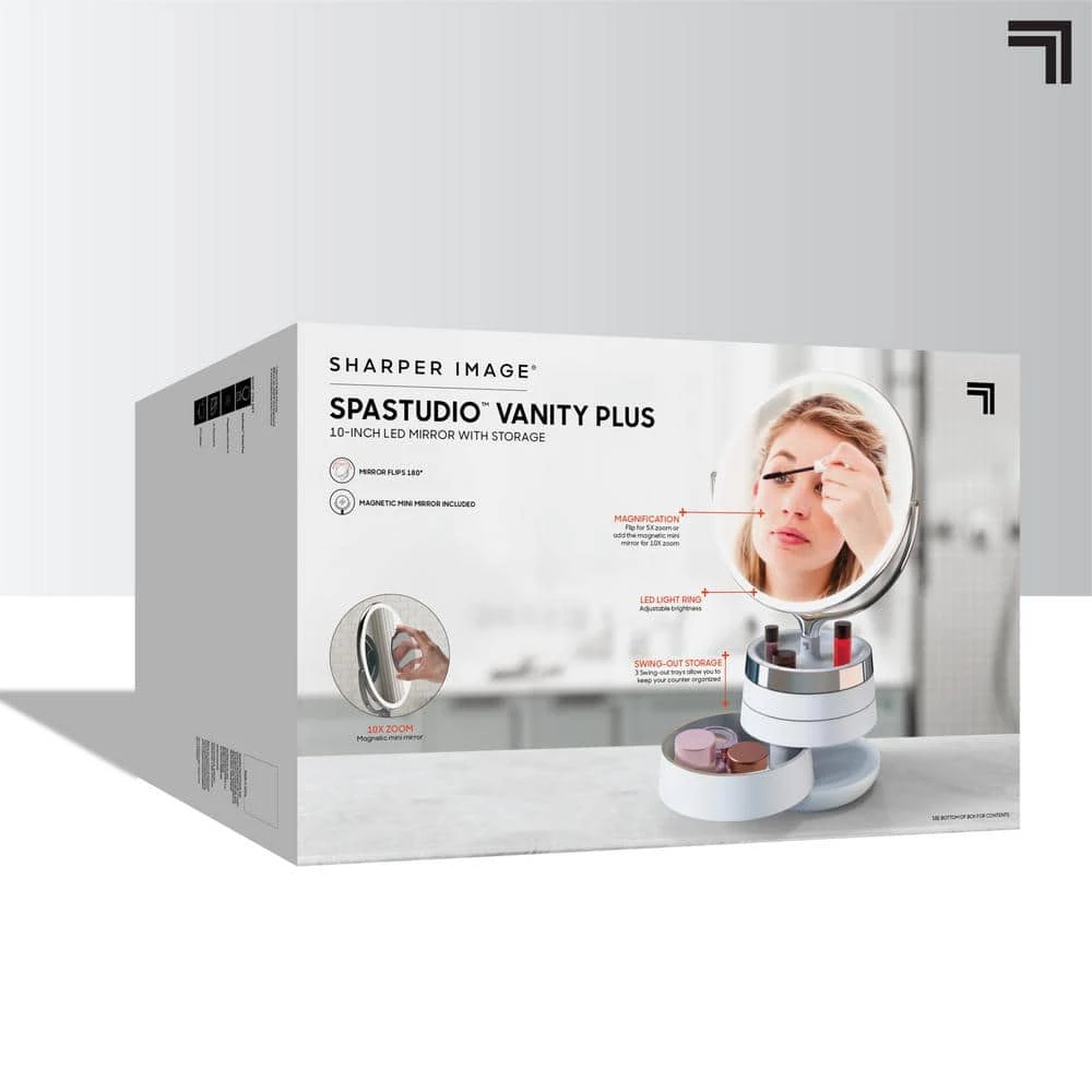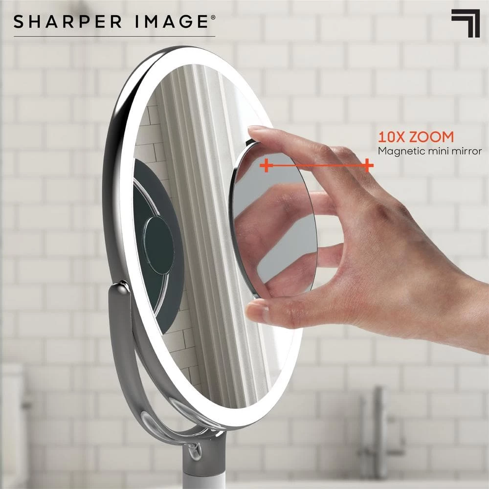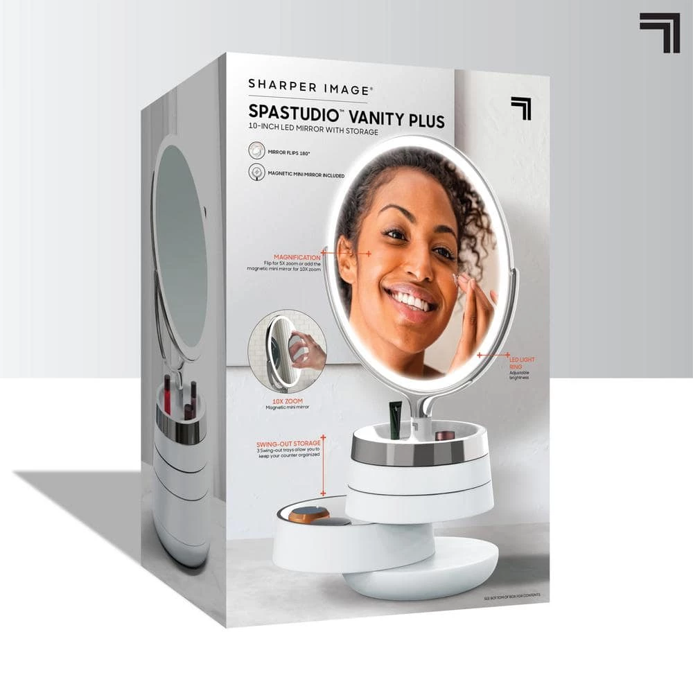 Find your perfect angle with a distortion-free vanity mirror featuring 5x and 10x zoom. The built-in trays swing out for clever, stylish storage to keep your counter organized, and the LED ring light provides perfect illumination. The future is bright with sharper image.