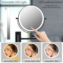 Unbranded 8 in. x 8 in. Bathroom magnifying Wall Mounted LED 10x Round Makeup Mirror in Mate Black