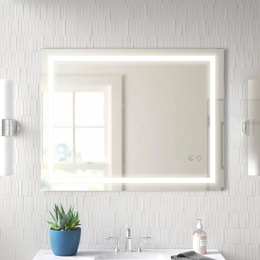 36 in. x 28 in. LED Lighted Makeup Mirror For Bathroom Vanity With Touch Bottom For Color Temperature, Brightness and Defogger, Ultra-Thin Wall Mounted Mirror With High Lumen, Vertical or Horizontal. 1 in. H Copper-Free silver mirror for lower desilver rate problem and longer service time. This small mirror is in the contemporary style and it’s perfect for bathrooms that feature similar contemporary style fixtures, which can be paired with pedestal sinks or makeup vanity tables to get your best look.