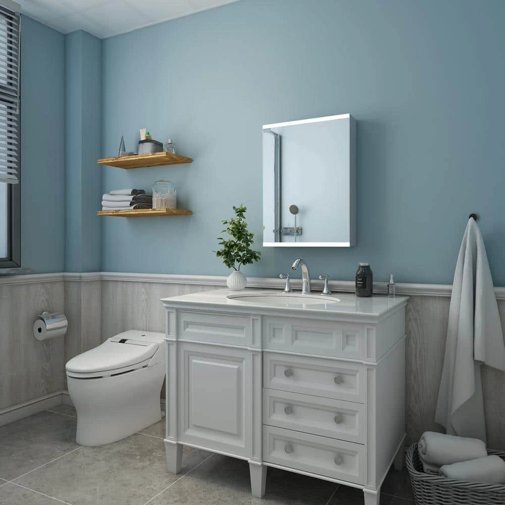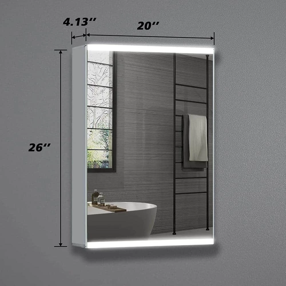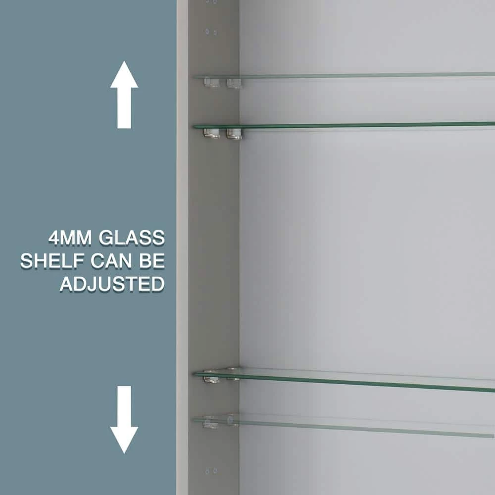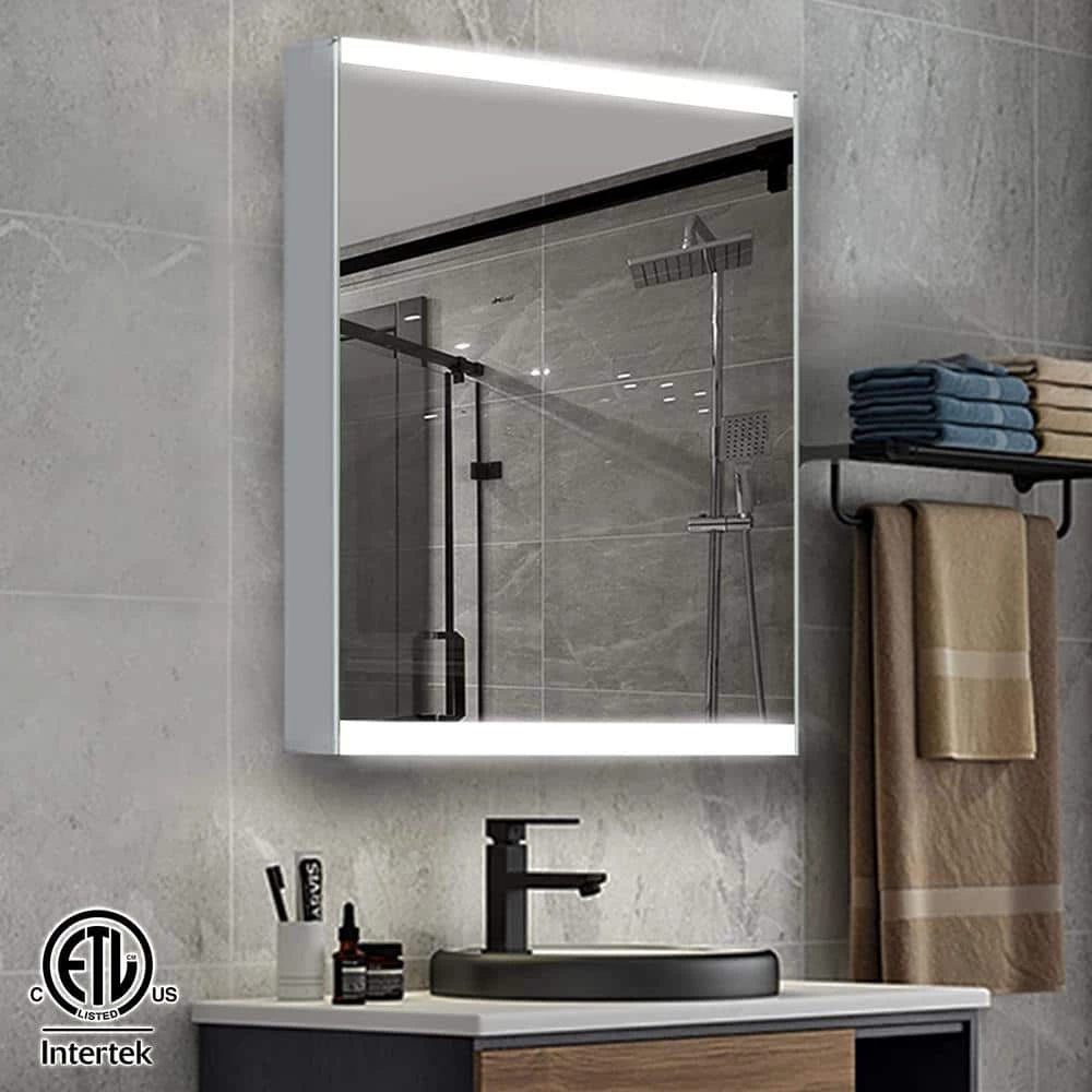 - With LED dimming light for daily use- 5000K color temperature and the light sensation closest to natural light give you a clearer and more delicate makeup experience, the LED light bars give the medicine cabinets a sleek and modern feel, enhancing their surroundings with natural light that also compliments the mirror function, the light is available to be adjusted from 20% – 100% of brightness