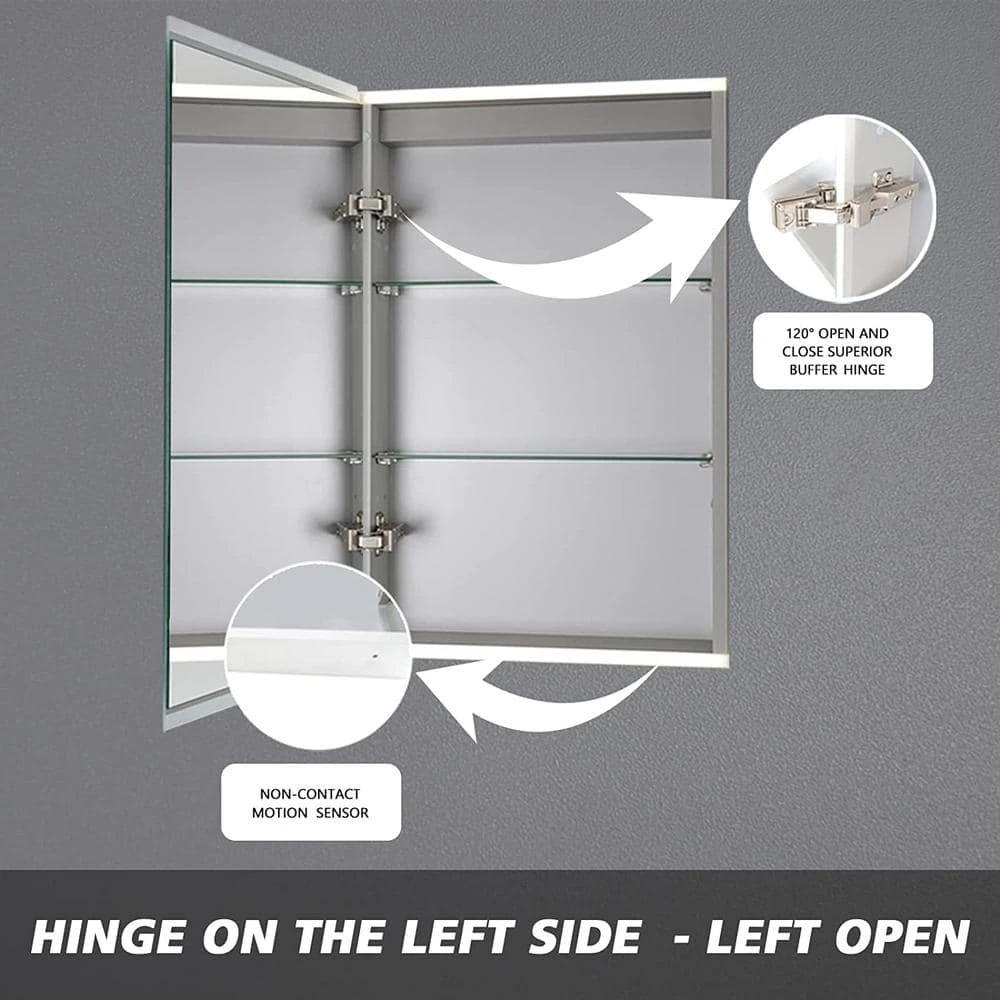- Touch-less sensor switch- our unique motion sensor light switch integrates seamlessly with the cabinet (switch on the right bottom of cabinet), don’t worry about getting mirror and hand stain