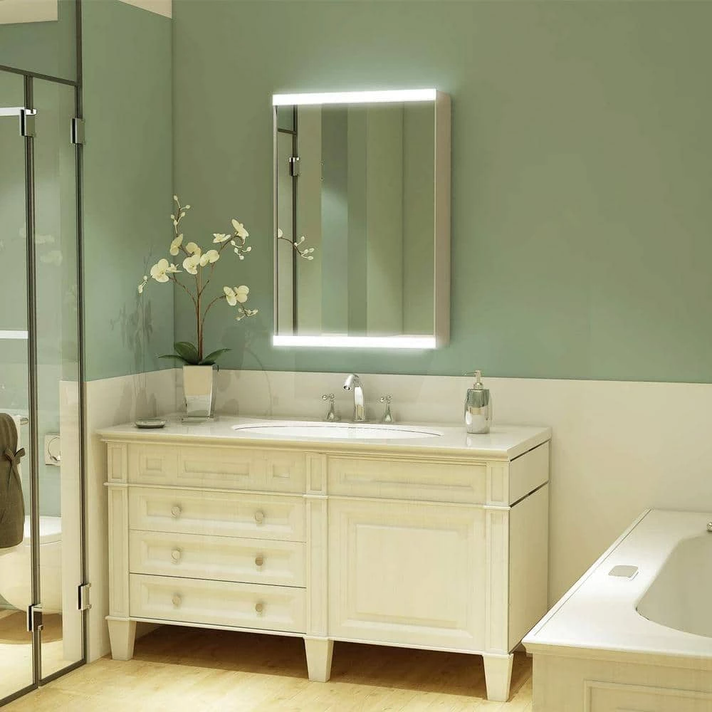 Our LED medicine cabinet is a symphony of design elements. We combined our most powerful lighting advancements to create a beautiful storage solution an expression of luxury and function for your bath. From a distance, the LED border produces a striking, modern glow. Up close, enjoy unparalleled light dispersion on the face and body.