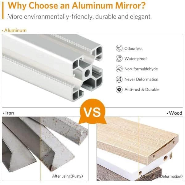 - Face mirror is made of copper-free silver mirrors, elegant, beveled pattern, aluminum mirror cabinet, double-side mirrored door