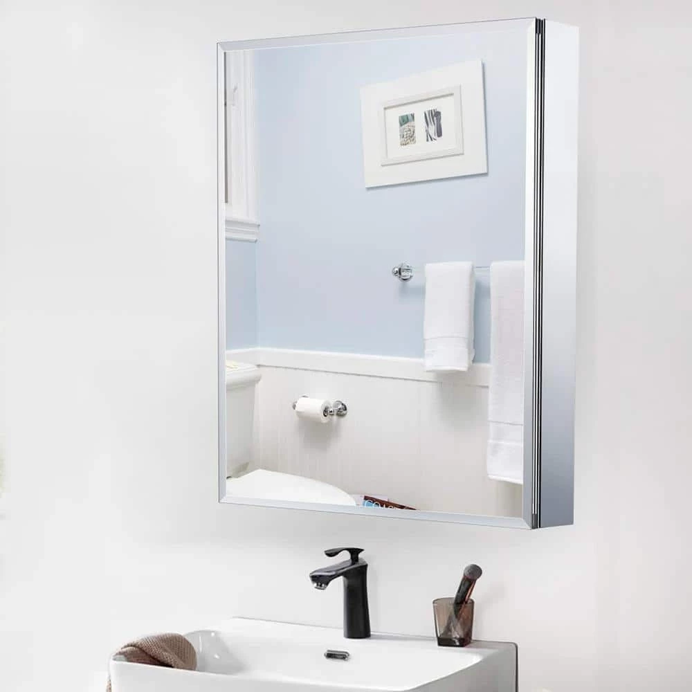 With a sleek mirrored surface inside and outside frameless medicine cabinets help you put your best face forward. sleek look that complements a variety of bathroom styles. Keep your bathroom clutter-free by placing frequently used items conveniently at your fingertips-without needing to bend and search through vanity drawers.