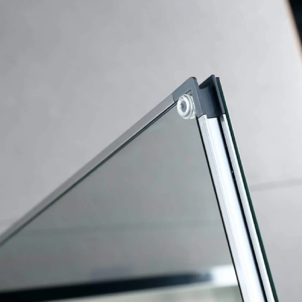 - The 7mm tempered glass shelves are strong and safe.