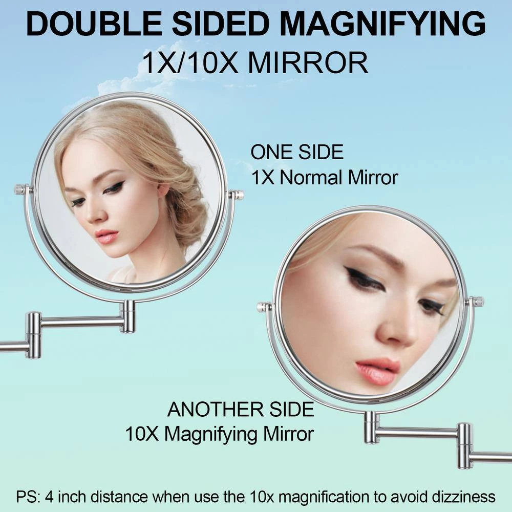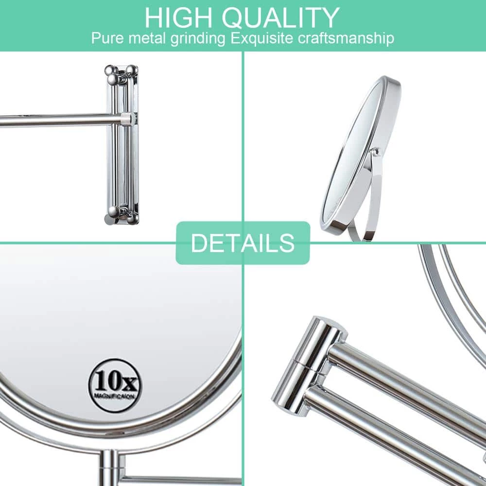 This 2-sided 1x/7x HD magnifying mirror can 360° rotate freely. Foldable arms save space, and also the height of the arm can be adjusted up and down, and the telescopic function makes it very easy to make up and shave. Its Multilayer plating is to prevent rust better. Just a simple and practical bathroom assistant for you.