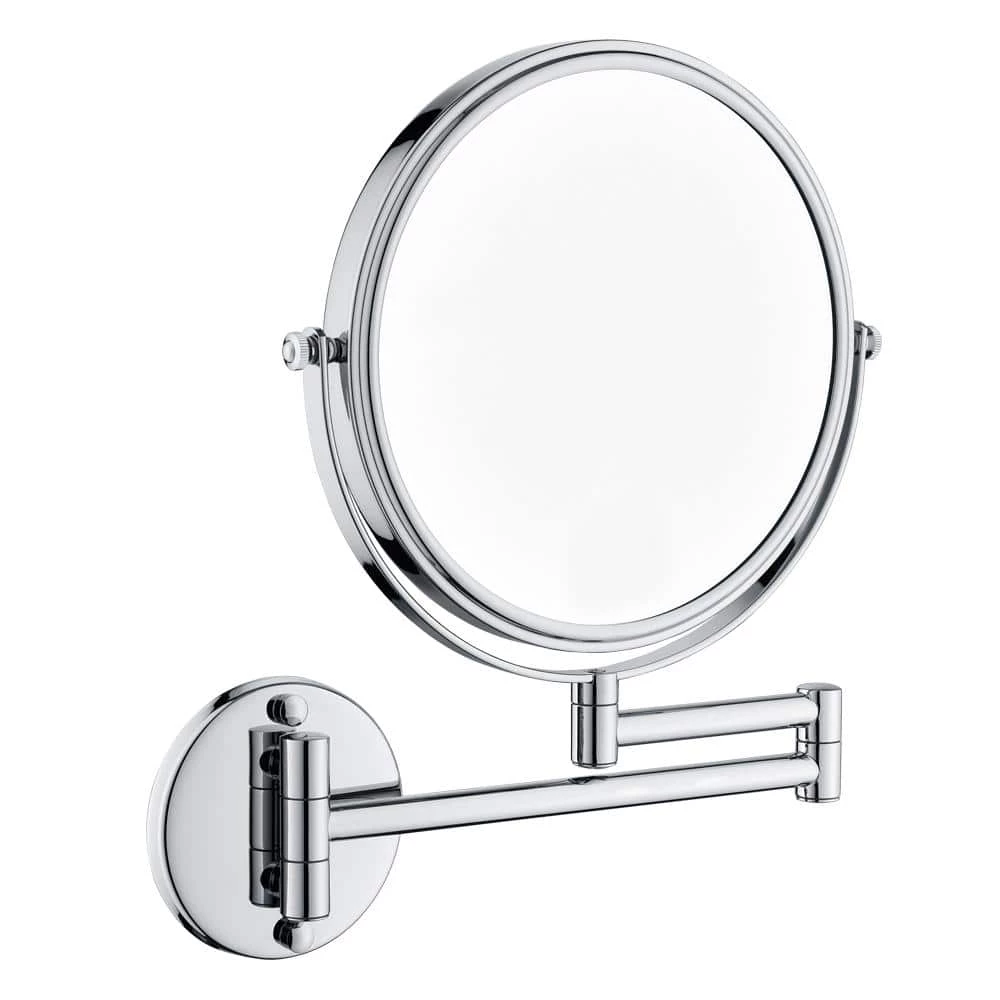 A LED lighted wall mounted makeup mirror, this model features an 8 in. round mirror face. Its stylish round shape comes with 3x and built-in 42-pieces LED lights. The dual-arm design and the on/off switch built into the base make it a functional and stylish addition to your bathroom. Double-sided magnifying glass, 1 side is normal mirror and the other side is 3x magnifying glass. The regular side is perfect for daily uses, cosmetics, and every beauty need. The 3x magnification side uses for wearing contact lenses, eyebrow trimming, makeup, and shaving.