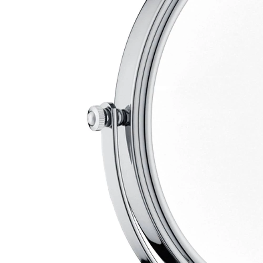 2-sided swivel wall mount mirror is used in bedroom, hotel, or bathroom, sleek look and magnification. This 2-sided circular mirror has an 8 in. Dia and features a smooth 360° swivel design that provides 1x and 3x magnification options to make sure every detail of your hair and makeup are in place. The extension arm and smooth rotation adjusts to all angles for a dynamic point of view. Copper-less mirror provides better quality and higher durability. It has longer lifetime and environmentally friendly. The base, frame, and column are made of 304 stainless steel and zinc alloy to prevent rust and corrosion.