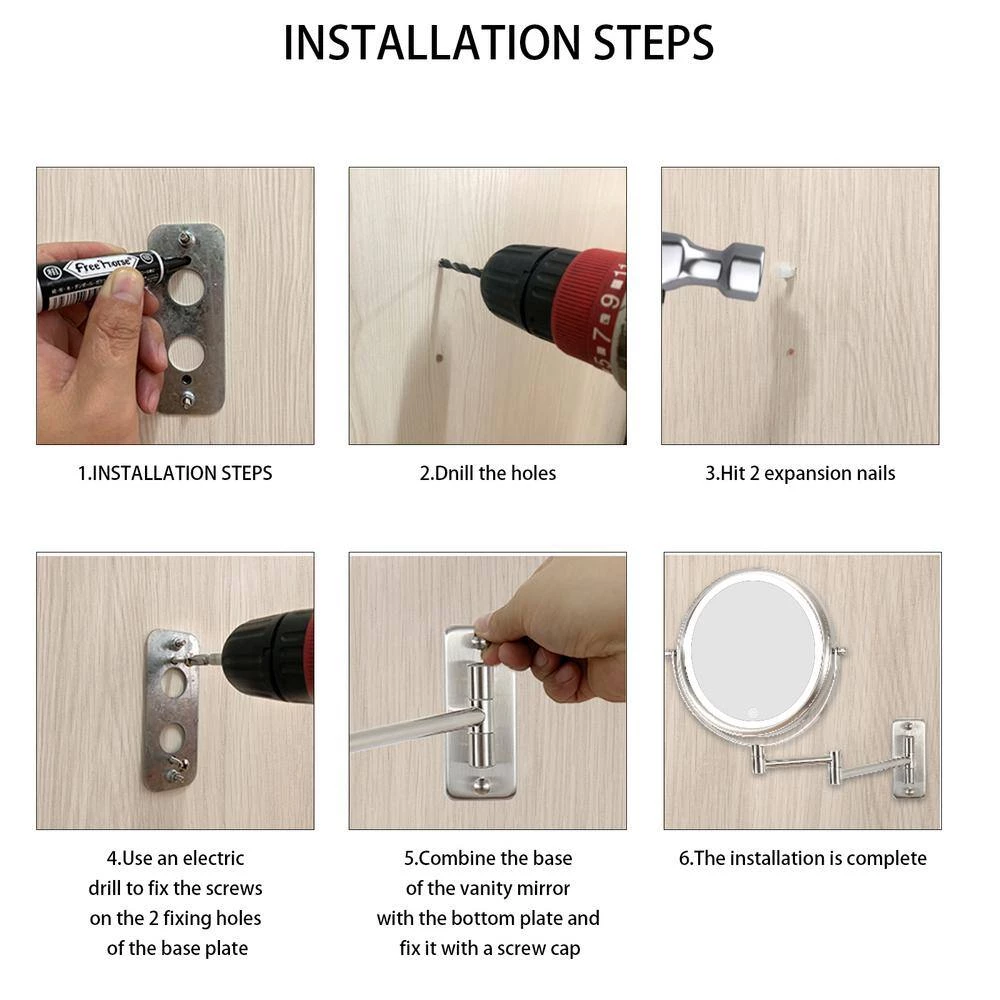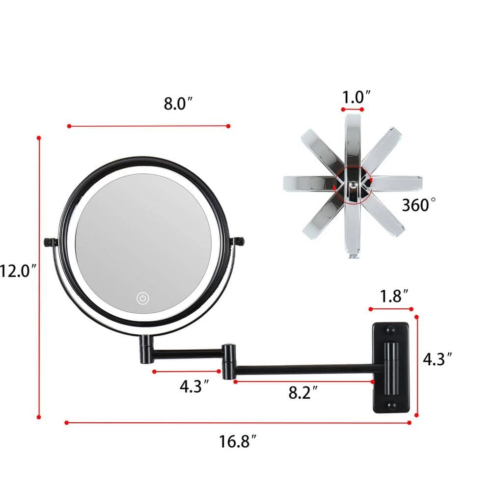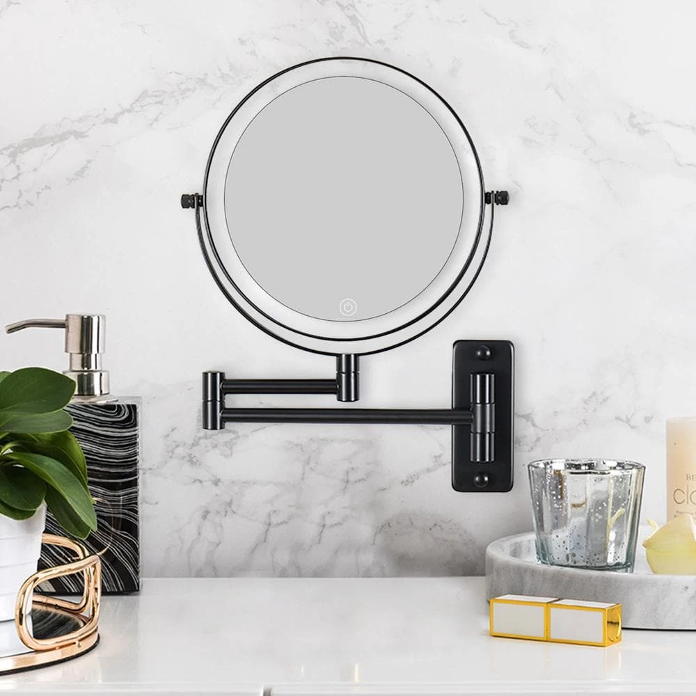 Wall mounted makeup mirror stands out for its modern and stylish look. It has an adjustable mirror arm that adjusts to fit your position. When beautiful ladies want to apply makeup, close-up magnification can be provided for the perfect makeup application, with precise magnification, 1x and 10x magnification options, ensuring every detail is in place. The mirror features an attractive metal finish that protects against moisture and condensation and is designed to be wall mounted.