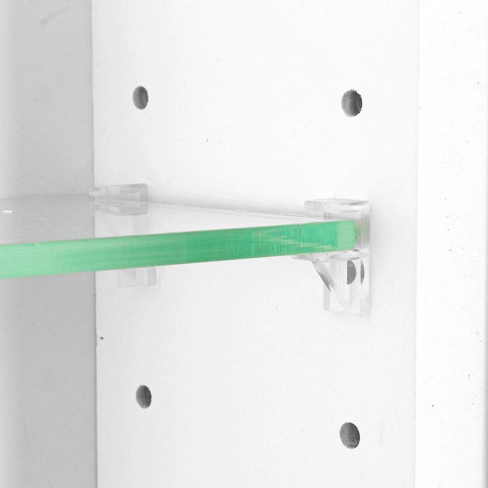 Perfect for any bathroom. Recesses in the wall between the studs, and simply screws to the studs on each side of the opening. Only the door is outside the wall. Fully adjustable glass shelves inside. Our unique, patented design of shelf supports keeps each shelf in place. Concealed hinges with soft close built in assuring the door will never slam shut but softly close on its own instead. The box is solid pine and the Slab panel style door is MDF. White enamel finish. The box is 3.5 in. deep inside and gives you plenty of usable depth, but fits in standard 2×4 walls. The cabinet box is 12.5 in. wide inside. The door is reversible to open either Left or Right. Completely assembled. All you need to do is put one screw in each hinge to mount the door. Then insert it into the wall and screw it to the studs with included screws. If you are replacing a current cabinet, measure your wall opening. White plastic trim surround covers the rough edges of your opening up to 1/2 in. all around. The door covers the trim surround when closed so the only thing you see outside the wall is the door itself.