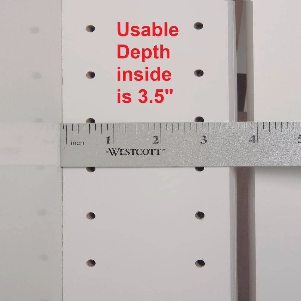 Perfect for any bathroom. Recesses in the wall between the studs, and simply screws to the studs on each side of the opening. Only the door is outside the wall. Fully adjustable glass shelves inside. Our unique, patented design of shelf supports keeps each shelf in place. Concealed hinges with soft close built in assuring the door will never slam shut but softly close on its own instead. The box is solid pine and the Slab panel style door is MDF. White enamel finish. The box is 3.5 in. deep inside and gives you plenty of usable depth, but fits in standard 2×4 walls. The cabinet box is 12.5 in. wide inside. The door is reversible to open either Left or Right. Completely assembled. All you need to do is put one screw in each hinge to mount the door. Then insert it into the wall and screw it to the studs with included screws. If you are replacing a current cabinet, measure your wall opening. White plastic trim surround covers the rough edges of your opening up to 1/2 in. all around. The door covers the trim surround when closed so the only thing you see outside the wall is the door itself.