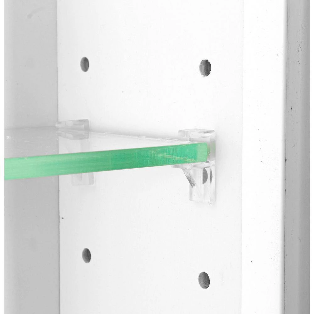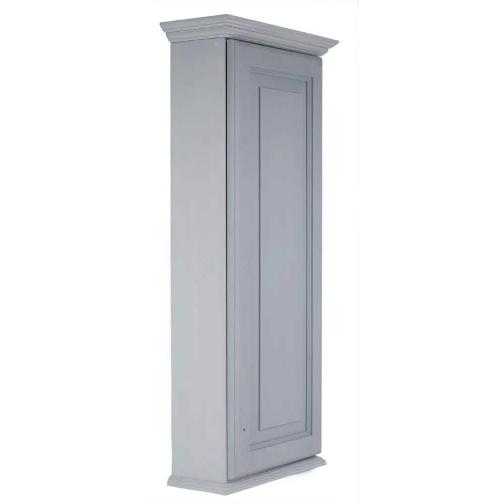 Mounts on the wall with steel mounting brackets inside for an easy installation. With 2-mounting methods, there is no need to worry about where the studs are in the wall. 3-fully adjustable glass shelves slide into our patented shelf supports so they don’t tip or rock. Raised panel door sits on concealed hinges with soft close feature, door is reversible so you can mount it to open either direction. Perfect as a medicine cabinet, spice cabinet, or storage cabinet anywhere. Overall Measurements are 19.5 in. H x 17 in. x 3.25 in. D. You’ll have nearly 2.5 in. D INSIDE the cabinet. Primed and ready for you to paint it. Solid pine cabinet box with solid maple door.