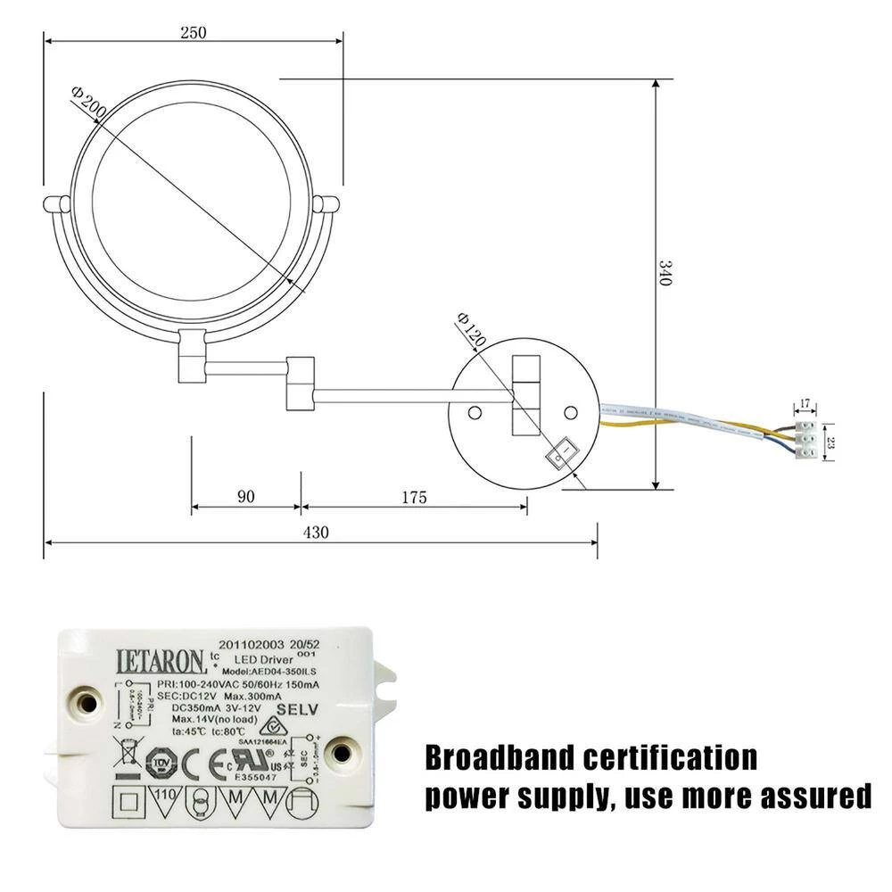 - Finishing chrome finish: this LED makeup mirror can use in bedroom, hotel, or bathroom