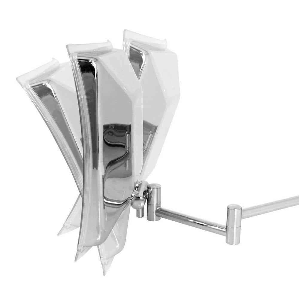 - Wall mounted installation with double jointed arm, mirror rotates in all directions