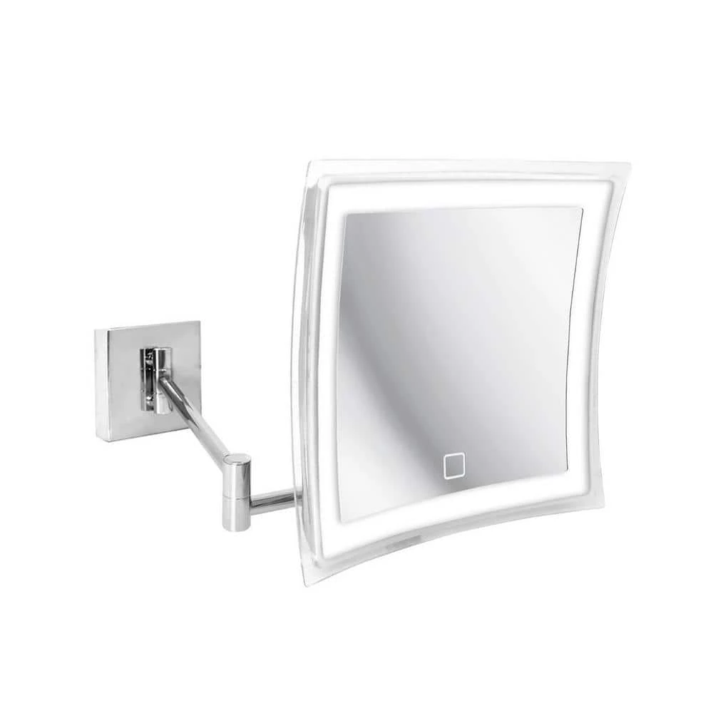 Beauty 500T, Hard-Wired LED Lighted Magnfiying Makeup Mirror, by WS Bath Collections. The Beauty 500T has a continuous LED light range that changes from a cool white (daylight white) to a warm white, operated using a simple touch sensor. The mirror has True-Look Glass that gives you a Reflection with No Distortions. Modern design, made of solid brass, and finished in polished chrome.