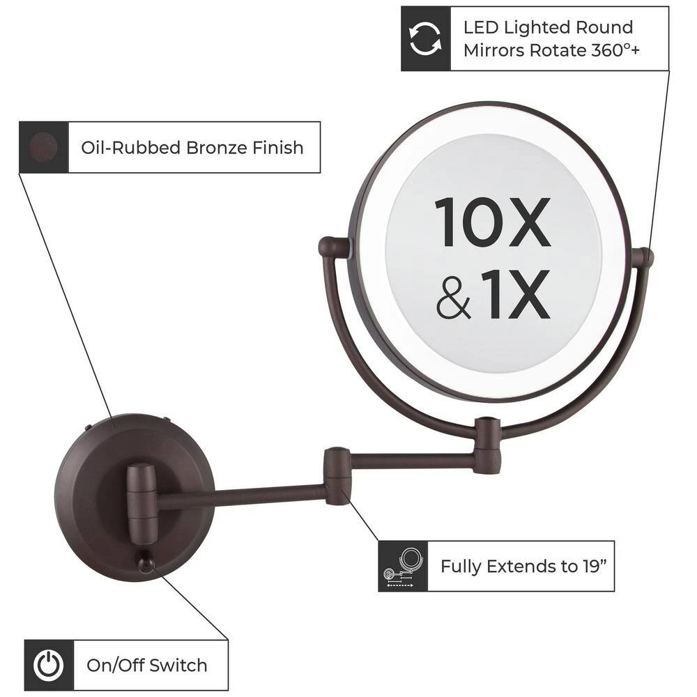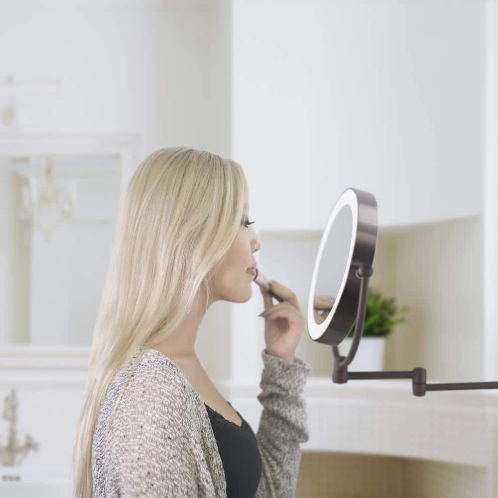 Upgrade your bathroom and get ready faster with Zadro’s Cordless LED Wall Mount Mirror that offers vividly bright lighting and dual magnifications so you can get ready anywhere. Thanks to its battery-powered cordless design, place this wall mount mirror anywhere in your bathroom to suit your everyday routine and decor style, even if there isn’t an electrical outlet within reach. One side features a full-view 1X reflection for daily grooming like hair styling and makeup, while the other side has a powerful 10X magnification to see zoomed-in detail such as eyebrow grooming and contact lens application. The optical quality glass mirror gives you the clearest, true-to-life view to flawlessly apply your makeup, while the bright LED lighting clearly illuminates your entire face.