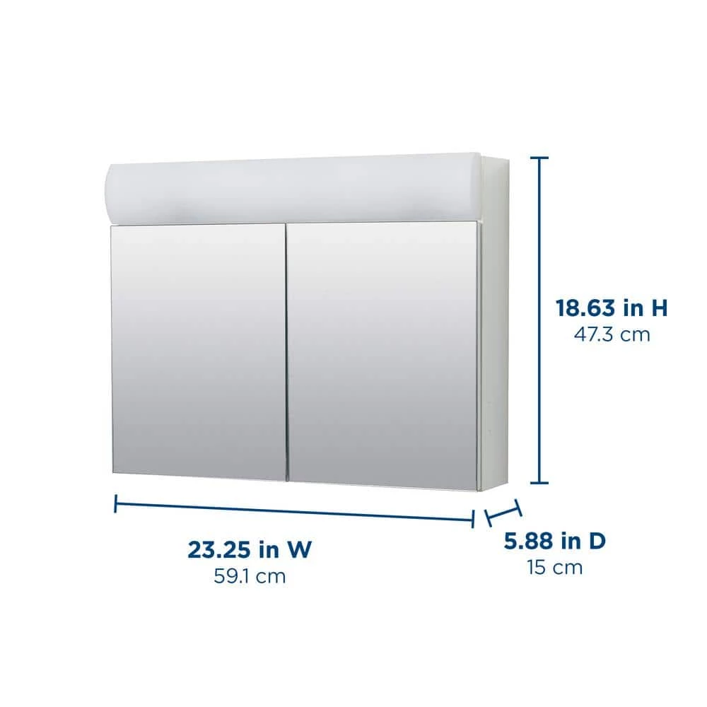 - Cabinet measures 23.25 in. W x 18.63 in. H x 5.88 in. D